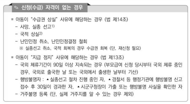 또한, 아이가 시설에서 양육되고 있거나 입양 절차가 완료된 경우 지급이 제한될 수 있으니 참고하세요.