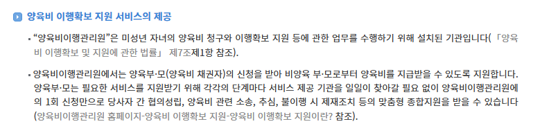 또한, 양육비 미지급자에게 직접적인 조치를 취할 수 있도록 법적 절차를 진행하는 역할도 수행해요.