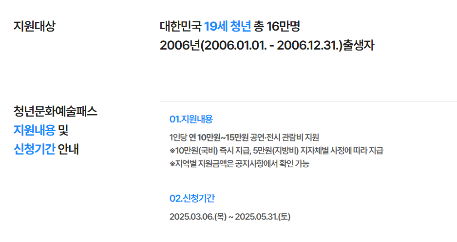 청년 문화예술패스의 지원 대상은 일반적으로 만 19세 청년으로 제한되지만, 세부 기준은 정책에 따라 달라질 수 있어요.