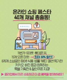 이번 동행축제에서는 11번가, 지마켓, 롯데온 등 15개 주요 온라인 쇼핑몰에서 최대 30%까지 할인된 가격으로 제품을 구매할 수 있어요.