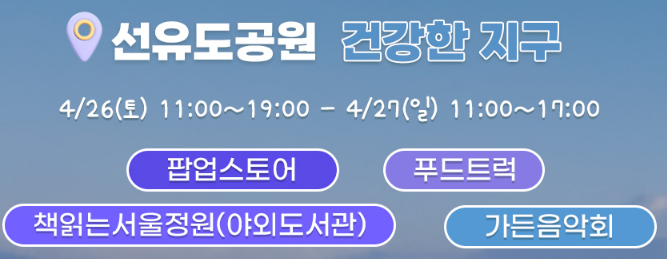 북서울꿈의숲에서는 ‘가족 정원축제’가 열려 아이들과 함께하는 목공 체험, 정원 동화 낭독회가 준비되고, 선유도공원은 ‘에코가든’이라는 테마로 업사이클링 전시와 제로 웨이스트 체험부스가 마련돼요.