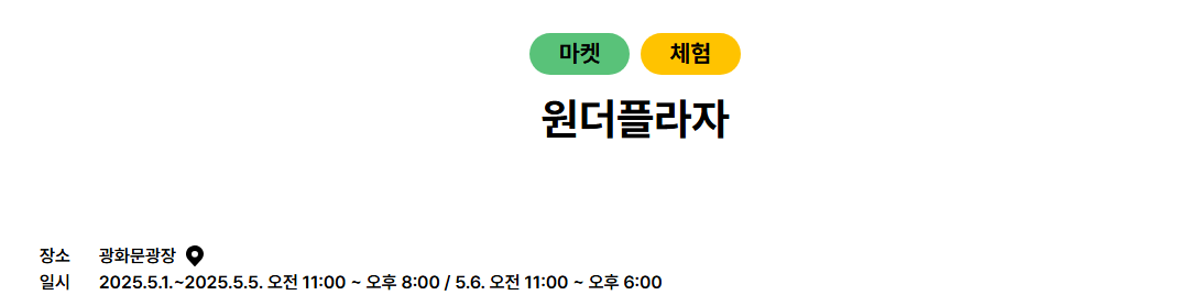 A. 원더플라자는 서울광장과 덕수궁 돌담길 일대에서 2025년 4월 30일부터 5월 6일까지, 매일 오전 11시부터 밤 9시까지 운영돼요. 일몰 후에는 조명이 더해져 야경이 예쁜 공간으로 바뀌니 저녁 시간대 방문도 추천해요.