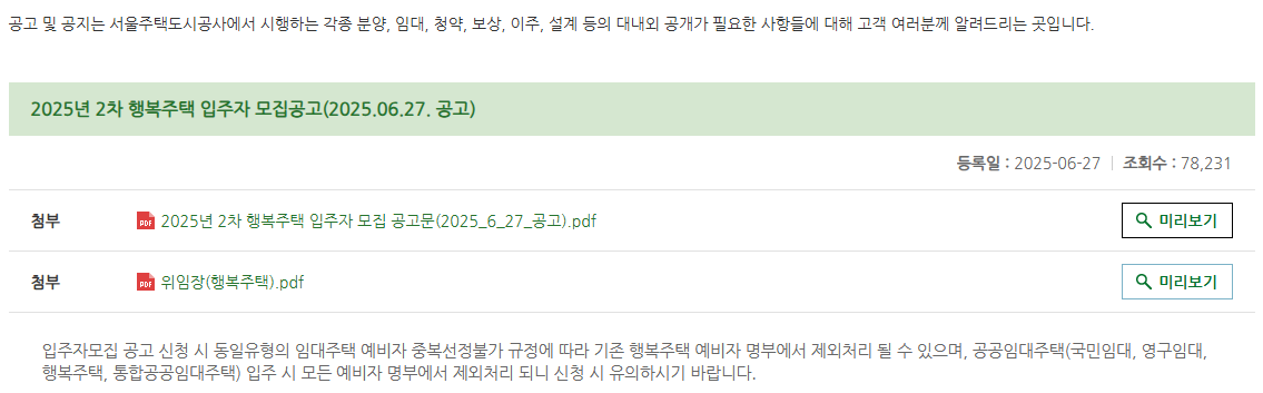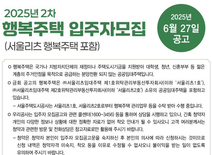 🔽 2025년 2차 행복주택 모집자 공고문 🔽